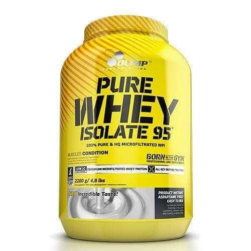- OLIMP Pure Whey Isolate 95 ist ein hochwertiges reines Molkenproteinisolat (WPI). Es ist mit einem Komplex aus Vitaminen und Mineralstoffen angereichert und enthält dabei nur minimale Mengen an Zucker und Fetten. Empfohlen für körperlich aktive Personen.