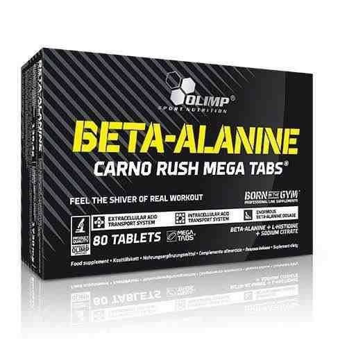 - Beta-alanin Carno Rush Mega Tabs ist ein Supplement, das Beta-Alanin und L-Histidin enthält. Zusätzlich wurde die Zusammensetzung mit Vitamin B6 angereichert, das den Aminosäurestoffwechsel unterstützt.