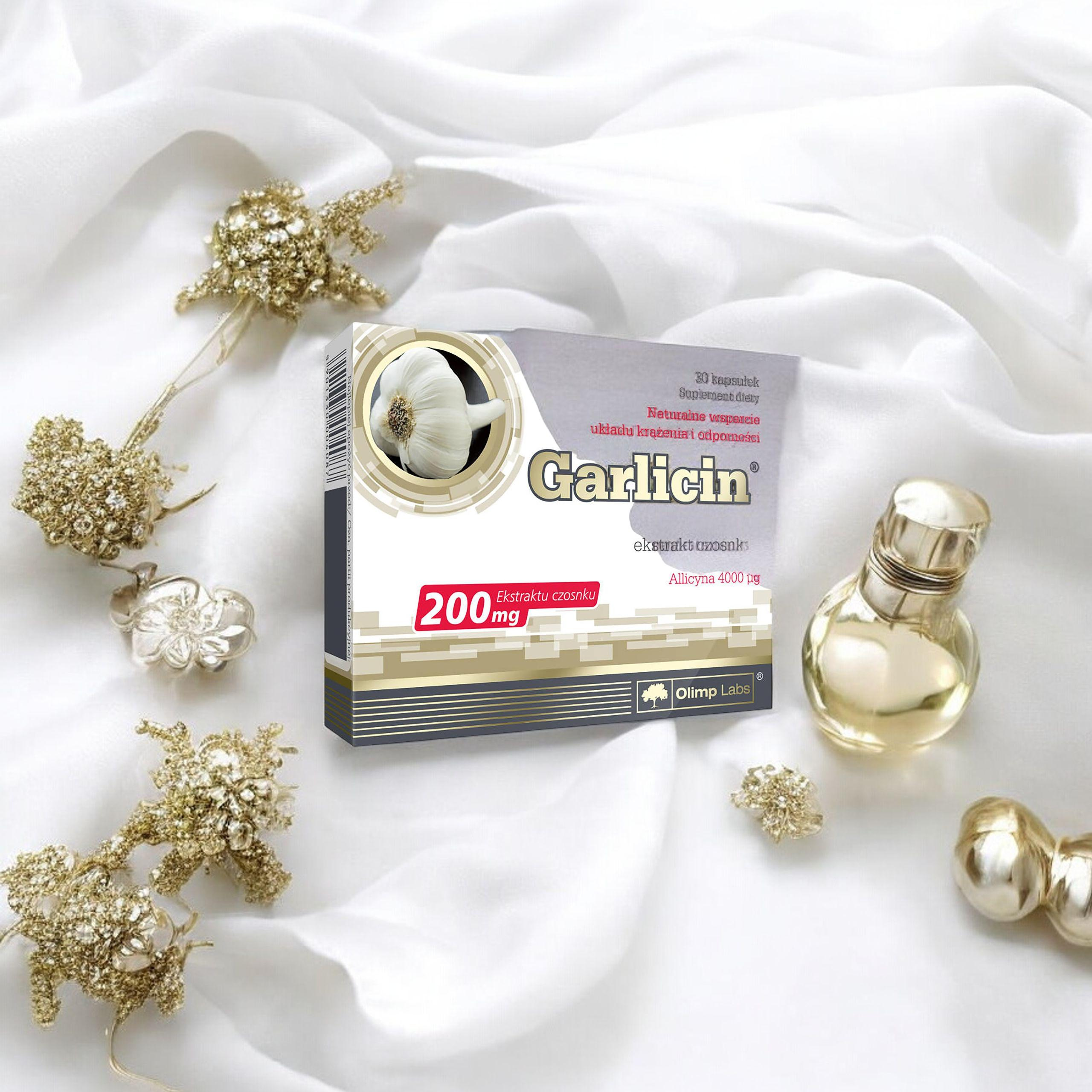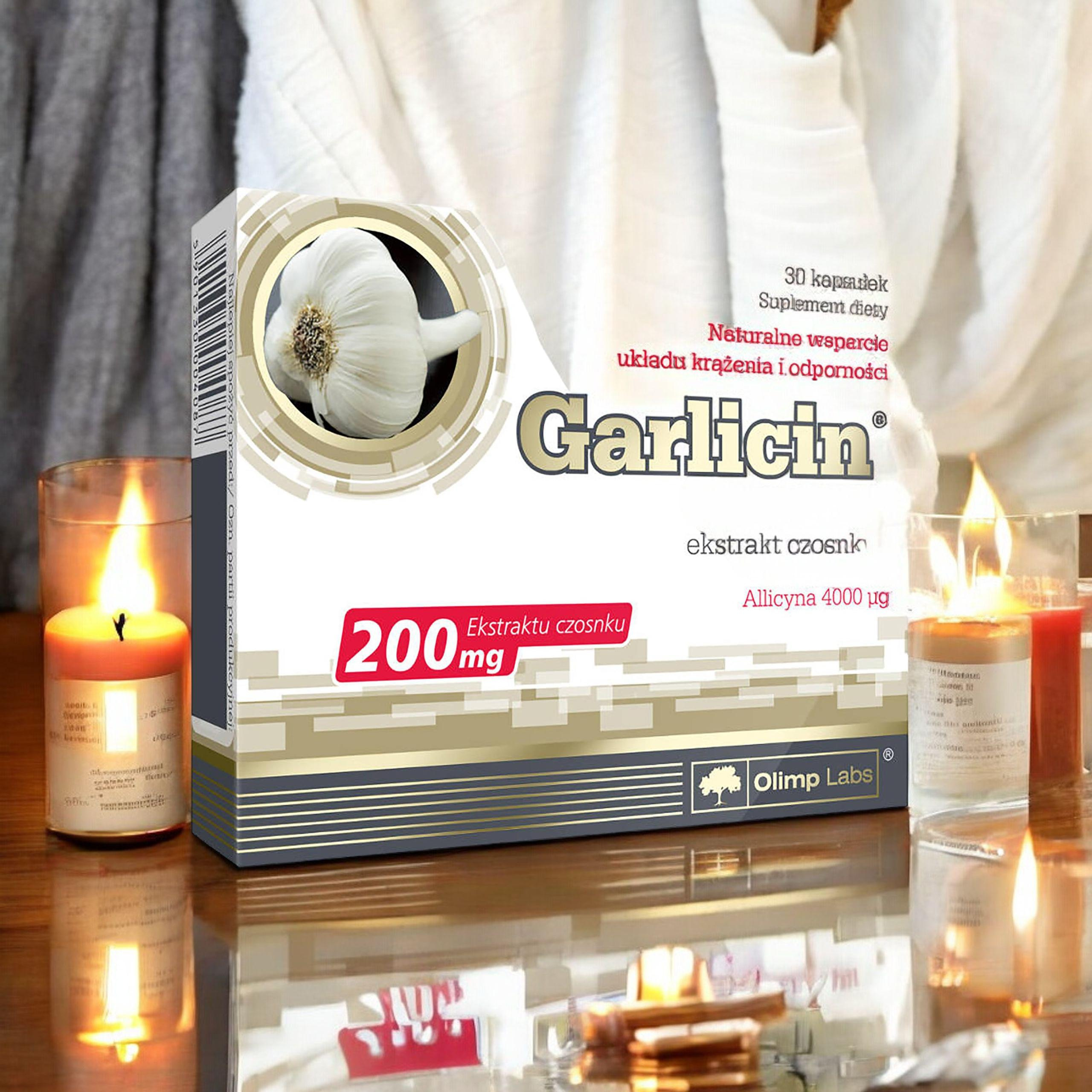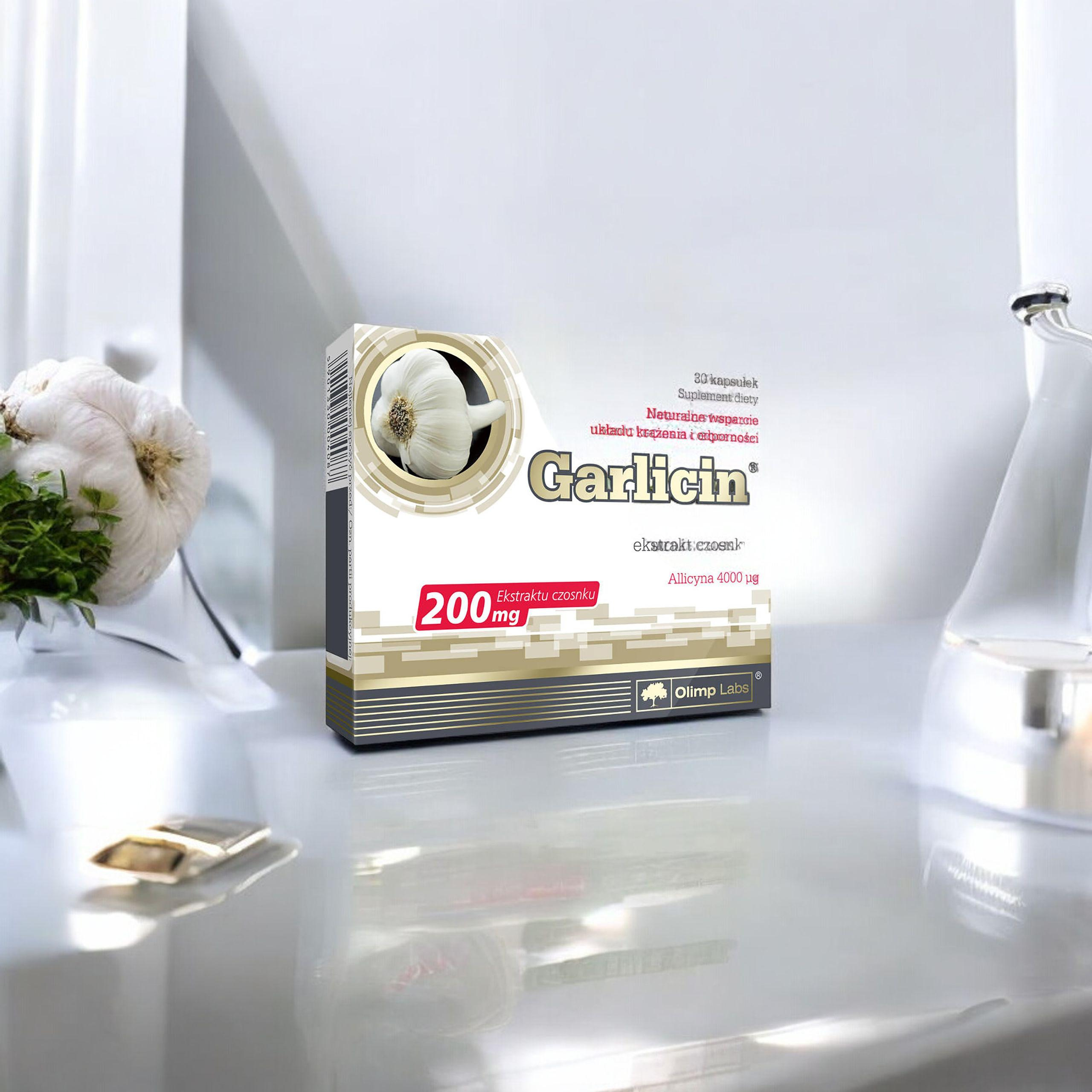Nahrungsergänzungsmittel, das hochkonzentrierten Extrakt aus den Zwiebeln des gewöhnlichen Knoblauchs enthält, standardisiert auf den Gehalt des wichtigsten Nährstoffs von Knoblauch – Allicin.