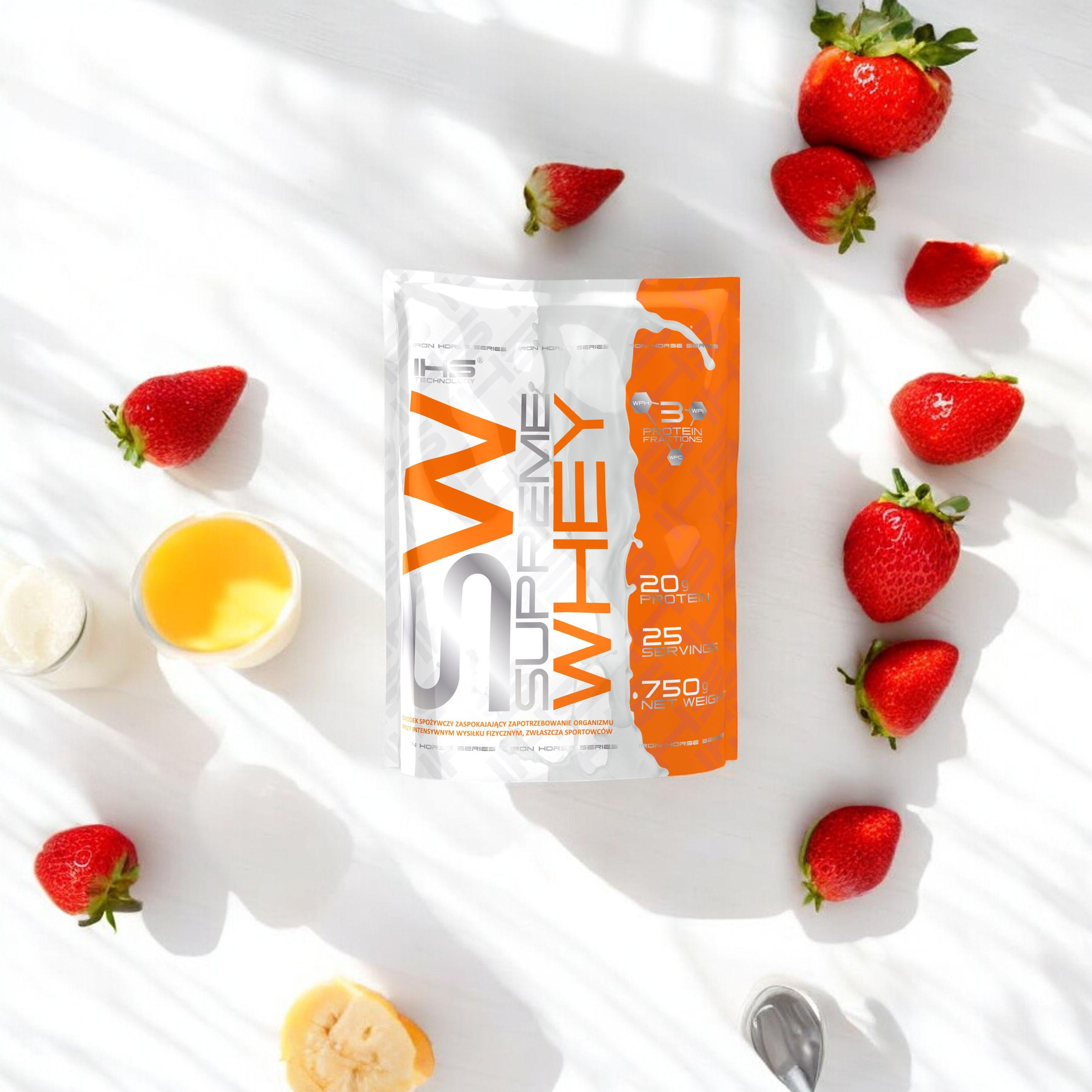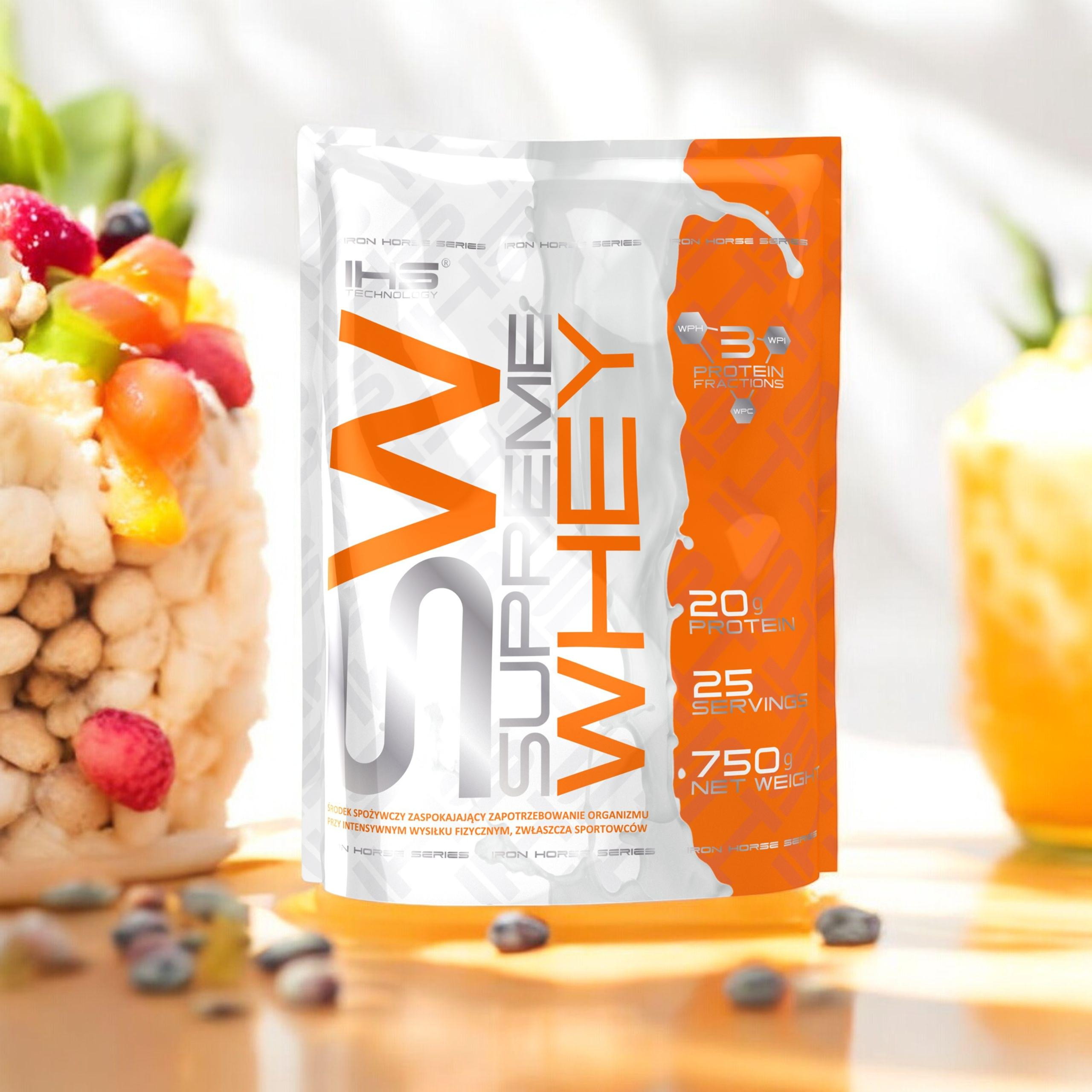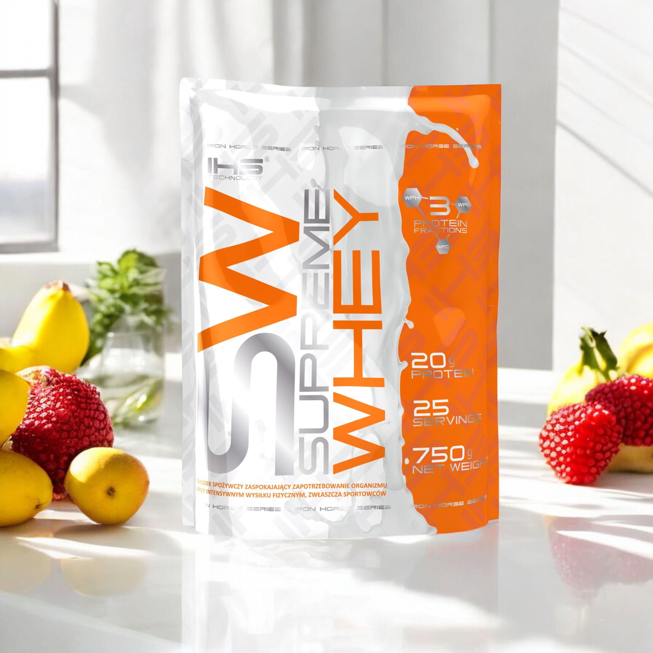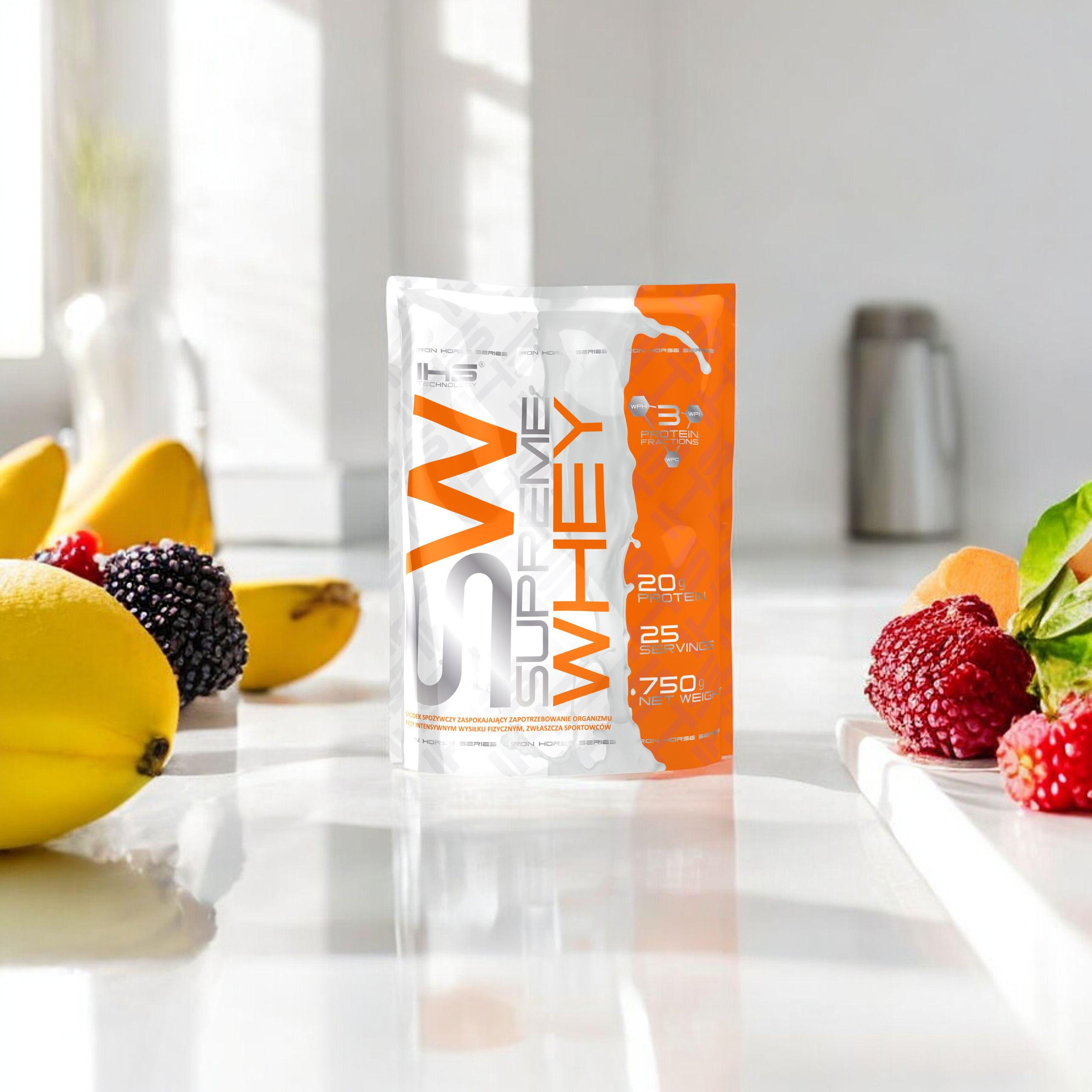 - Supreme Whey ist ein Proteinpräparat mit einem sehr reichen Aminosäureprofil, das eine verstärkte Proteinsynthese und den Eintritt des Körpers in einen hohen anabolen Zustand fördert, indem es eine positive Stickstoffbilanz aufrechterhält.