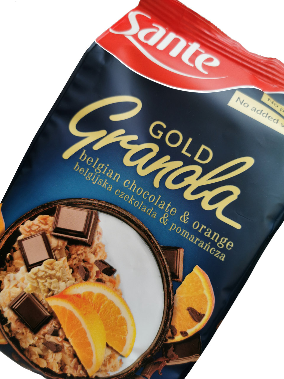 - Granola Gold von Sante sind Vollkorn, knusprige Haferflocken, die keinen Glukose-Fructose-Sirup oder Palmöl enthalten. Sie sind eine Quelle von Vitaminen, Mineralien und Ballaststoffen. Angereichert mit köstlicher belgischer Schokolade und Orange.