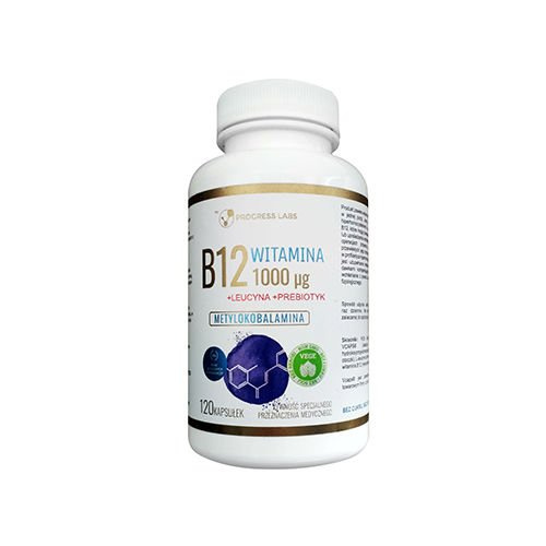 - Das Produkt Vitamin B12 1000mcg + Prebiotyk von Progress Labs ist ein Nahrungsergänzungsmittel, das Vitamin B12 in Form von Methylcobalamin enthält, mit einem Zusatz von Präbiotikum, das freundlich zu den guten Bakterien im Darm ist.