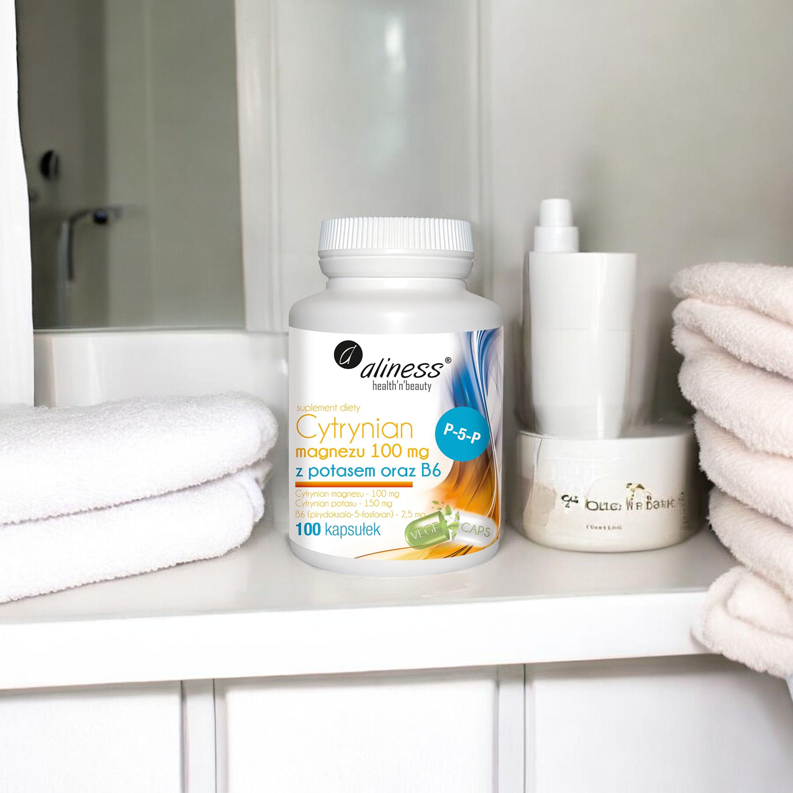 Magnesium-Nahrungsergänzungsmittel werden häufig mit Vitamin B6 angereichert, aus sehr gutem Grund. Dieses Vitamin erhöht die Magnesiumaufnahme aus dem Verdauungstrakt um 20-40%, verbessert den interzellulären Transport und hilft, die Reserven auf einem geeigneten Niveau zu halten. Die hohe Dosis von aktivem B6 (P-5-P), die in den Kapseln von Aliness enthalten ist, hilft zusätzlich, unter anderem den Hormonhaushalt zu regulieren und sorgt für die richtige Proteinverdauung. Darüber hinaus reguliert es den Glykogenstoffwechsel und sorgt für das effiziente Funktionieren der Muskeln. Auch Kalium beeinflusst die Glykogene Speicher in den Körperzellen, reguliert darüber hinaus den Blutdruck und unterstützt das Nervensystem. Die Zutaten von Cytrynian Magnezu wirken synchron und sorgen für hohe Resorbierbarkeit von richtig dosierten Inhaltsstoffen, die dein Körper benötigt!