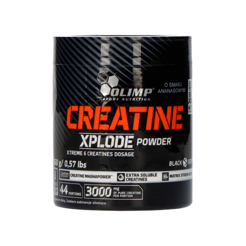 - Das Ergänzungsmittel Creatine Xplode Powder von Olimp enthält Kreatin in 6 Formen. Es wird Personen empfohlen, die körperlich aktiv sind und Sportler. Das Produkt zeichnet sich durch schnelle Absorption und hohe Löslichkeit aus. Zusätzlich enthält es kein
