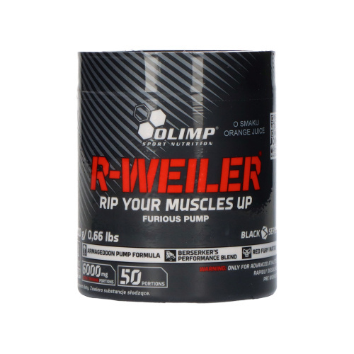 • Die gut bekannte Pre-Workout-Mischung R-Weiler von Olimp ist eine Garantie für Stimulation. Sie sorgt für einen Muskelpump-Effekt, erhöht die Konzentration und hilft bei der Reduzierung von Körperfett.