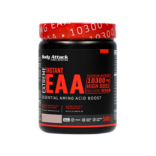 - Extreme Instant EAA von Body Attack sind essentielle EAA-Aminosäuren in Form eines ultrafeinen Pulvers, das sich hervorragend auflöst und schnell absorbiert. Effektiver Schutz für Ihre Muskeln.