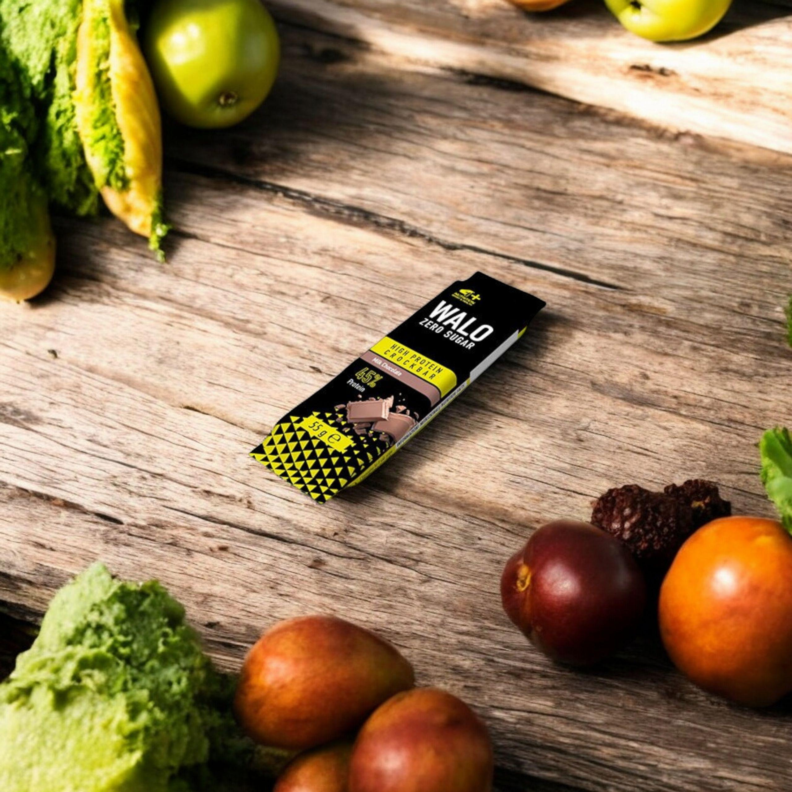 - Walo Zero Sugar von 4+ Nutrition ist ein hochproteinhaltiger Riegel ohne Laktose und Zucker, überzogen mit köstlicher Schokolade. Ideal für Sportler und Figurbewusste, enthält 25g Eiweiß und keinen Zuckerzusatz pro Portion (ca. 250 kcal). Eine leckere, vo
