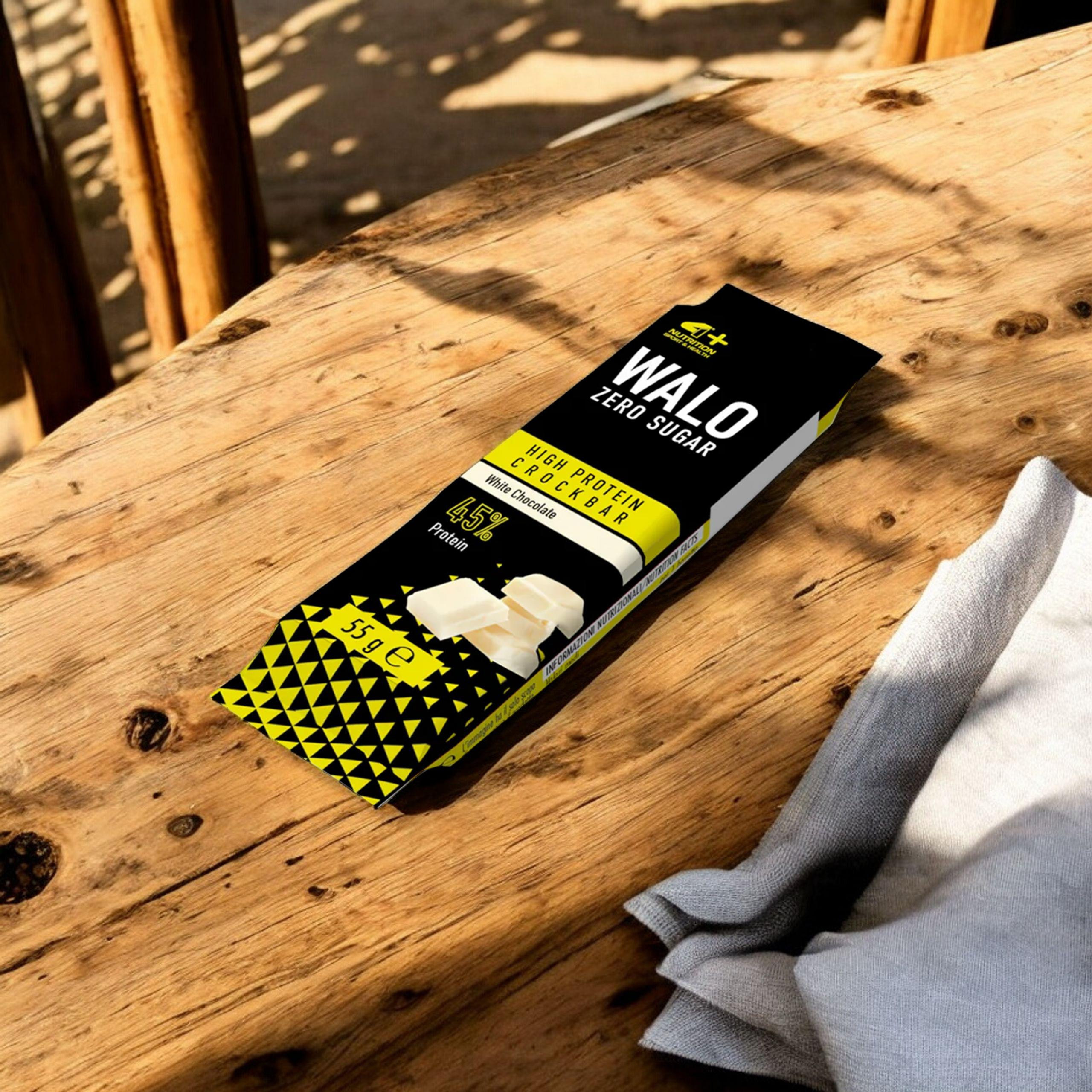 - Walo Zero Sugar von 4+ Nutrition ist ein hochproteinhaltiger Riegel ohne Laktose und Zucker, überzogen mit köstlicher Schokolade. Ideal für Sportler und Figurbewusste, enthält 25g Eiweiß und keinen Zuckerzusatz pro Portion (ca. 250 kcal). Eine leckere, vo