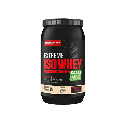 Extreme Iso Whey von Body Attack ist kein gewöhnliches Molkenprotein-Isolat. Die Milch, aus der es hergestellt wird, stammt von Kühen, die auf grünen irischen Weiden grasen. Es wird mit schonenden Produktionsprozessen - CFM - hergestellt, die es erlauben, die ursprüngliche Nährstoffzusammensetzung des Produkts zu bewahren. Es enthält minimale Mengen an Laktose, Fett und Zucker. Das Molkenprotein-Isolat hemmt den Katabolismus stark, da es sich durch die kürzeste Aufnahmezeit der Aminosäuren ins Blut auszeichnet. Dadurch befindet sich der Körper ständig in einem hohen anabolen Zustand, was das Wachstum der Körpermasse und einen deutlichen Kraftzuwachs erleichtert. Spüren Sie den Unterschied, den Qualität macht.