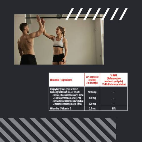 - Omega 3 sind Kapseln der Marke MP Sport, die konzentriertes Fischöl enthalten, darunter EPA und DHA mit Zusatz von Vitamin E. Es ist ein Komplex aus Fettsäuren, die die Gesundheit beeinflussen, unter anderem die normale Funktion des Herzens und des Gehirn