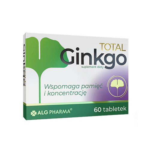 - Ginkgo Total - Nahrungsergänzungsmittel zur Unterstützung des Kreislaufsystems und der kognitiven Funktionen. Enthält 80 mg Extrakt aus Blättern des japanischen Ginkgos in jeder Tablette, unterstützt die geistige Leistungsfähigkeit.