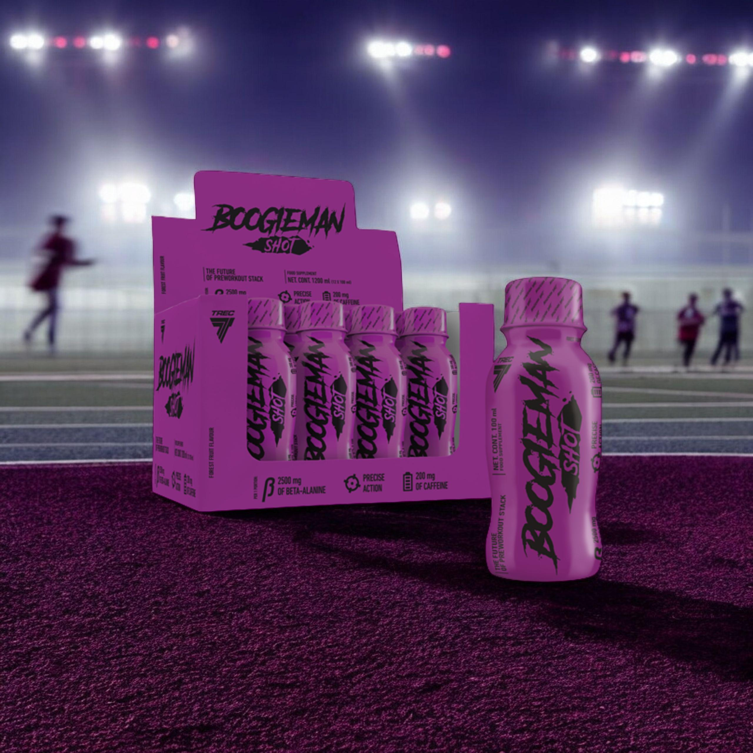 • TREC Boogieman Shot - maximale Kraft in handlicher Form. Trinkfertiges Energie-Supplement in praktischen 100ml-Flaschen, ideal für Training, Arbeit oder Reisen.