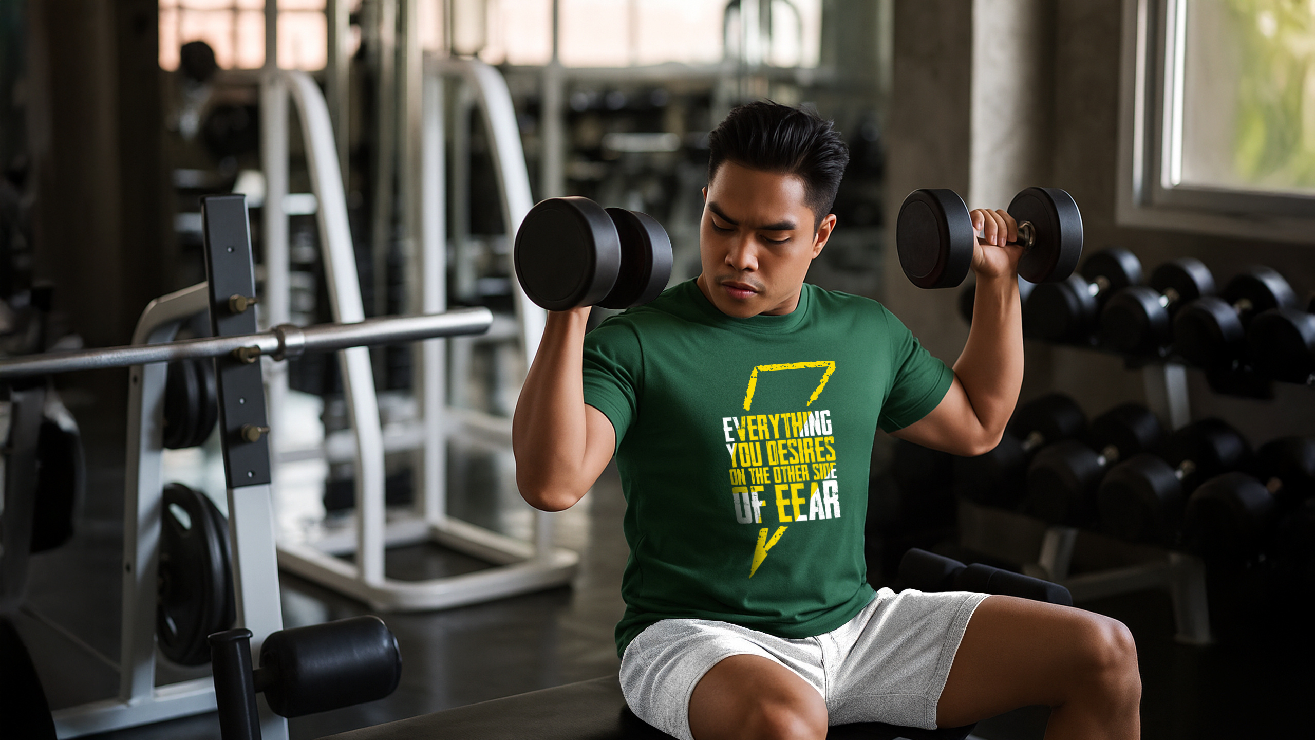 Das T-Shirt “Everything You Desire Is On The Other Side Of Fear” wurde für diejenigen entworfen, die nicht auf halbem Weg stehen bleiben. Für Menschen, die bereit sind, Risiken einzugehen, Herausforderungen anzunehmen und ihre Grenzen zu überschreiten – sowohl im Fitnessstudio als auch im Alltag. Es ist ein Symbol für Authentizität, Mut und innere Stärke, die dich antreibt, selbst wenn andere zweifeln.