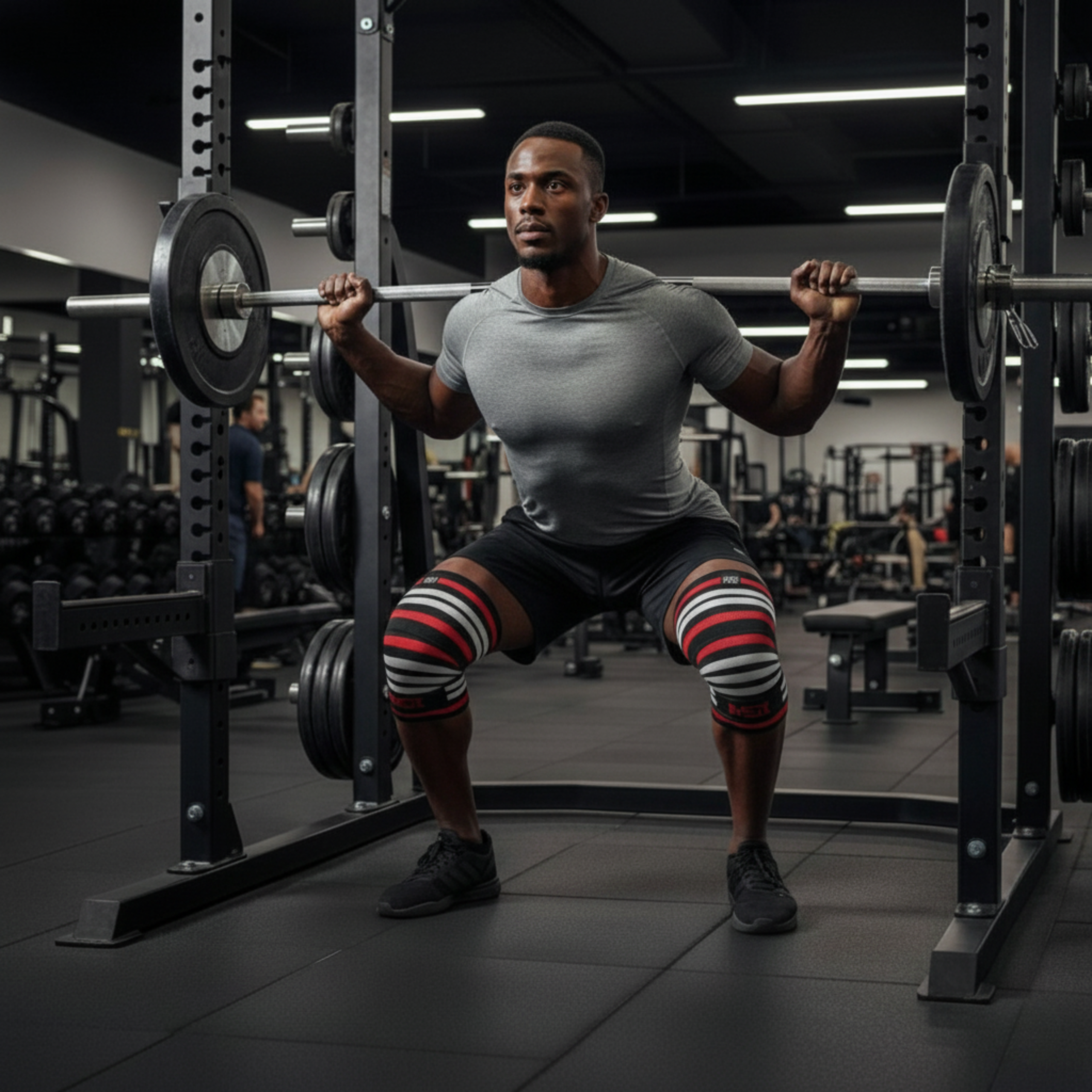- Maximale Stabilisierung der Kniegelenke während schwerer Kniebeugen und intensiver Beintrainings